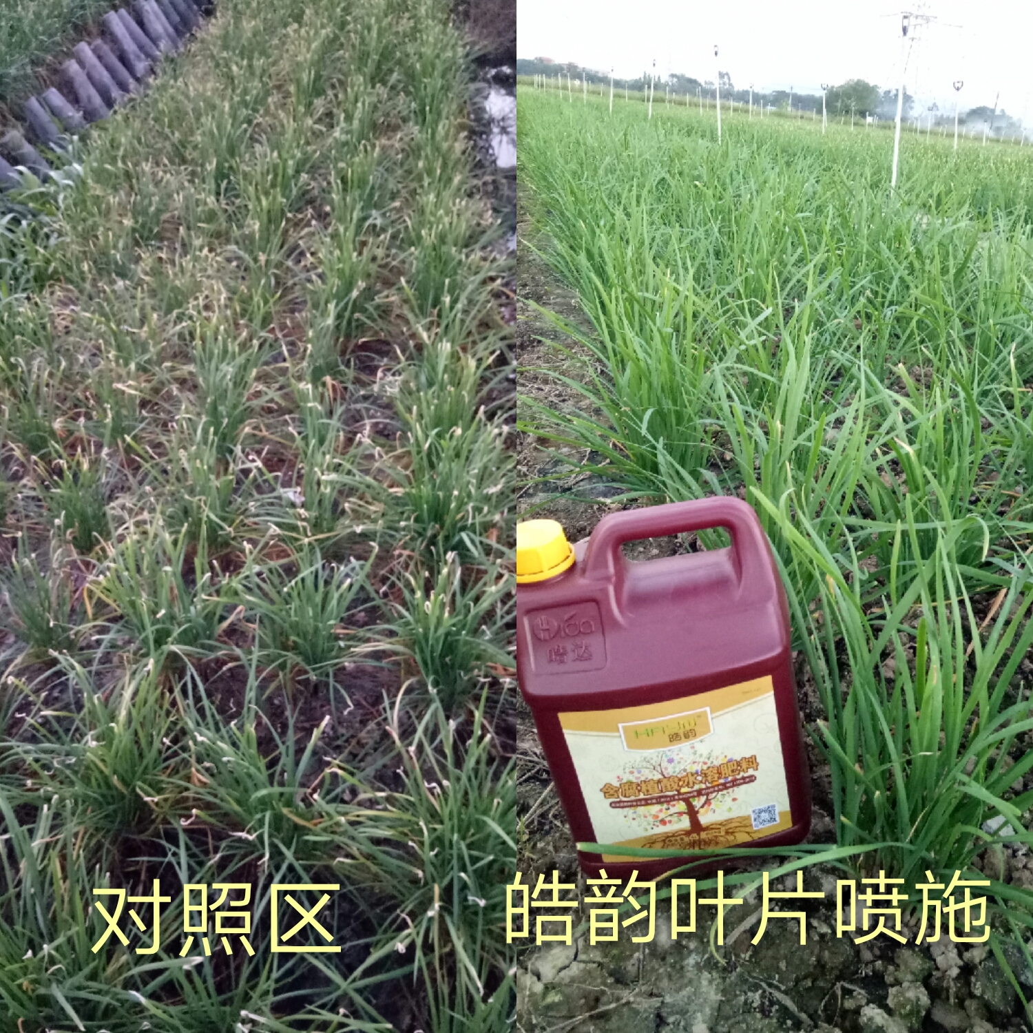 施肥時期:壓苗 時期問題: 幼苗植株不夠健壯,長勢過旺易徒長;葉片薄黃、易干尖; 施肥方案: 葉噴:皓達150-200倍(80-100mL/30斤水)+磷酸二氫鉀300倍(50g/30斤水) 施肥效果: 韭菜葉片挺直厚綠,莖桿粗壯,不徒長,抗逆性強,可有效預防韭菜干尖黃葉。