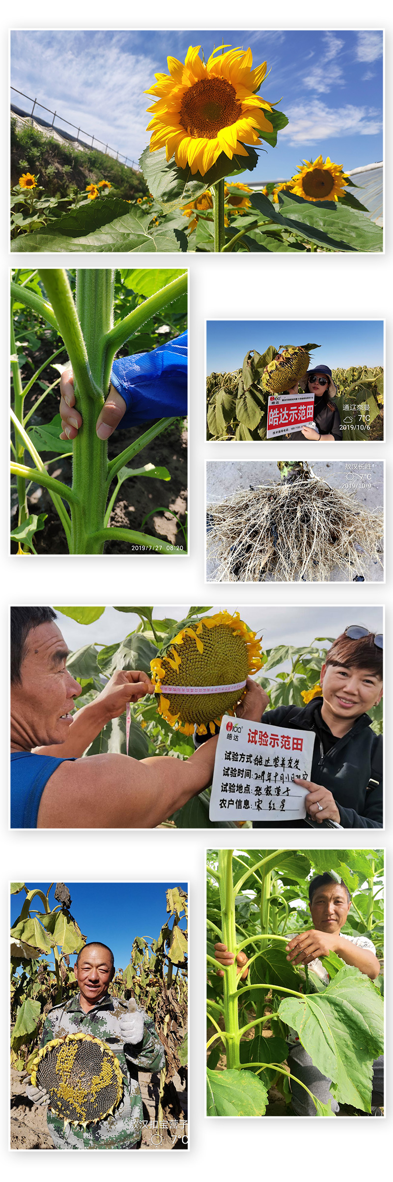 施肥時期:結實期 時期問題: 向日葵籽粒不飽滿,癟粒,千粒重低。 施肥方案: 淋根:皓達功能肥800倍(300mL/畝)+磷酸二氫鉀1000倍(300g/畝) 施肥效果: 有效預防向日葵空粒、癟粒,提高千粒重。 |