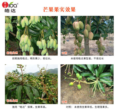 促進新根生成,易于根系吸收養分供給果實,加快果實膨大,使果面有光澤、果皮細膩上粉好,提高芒果的商品性。