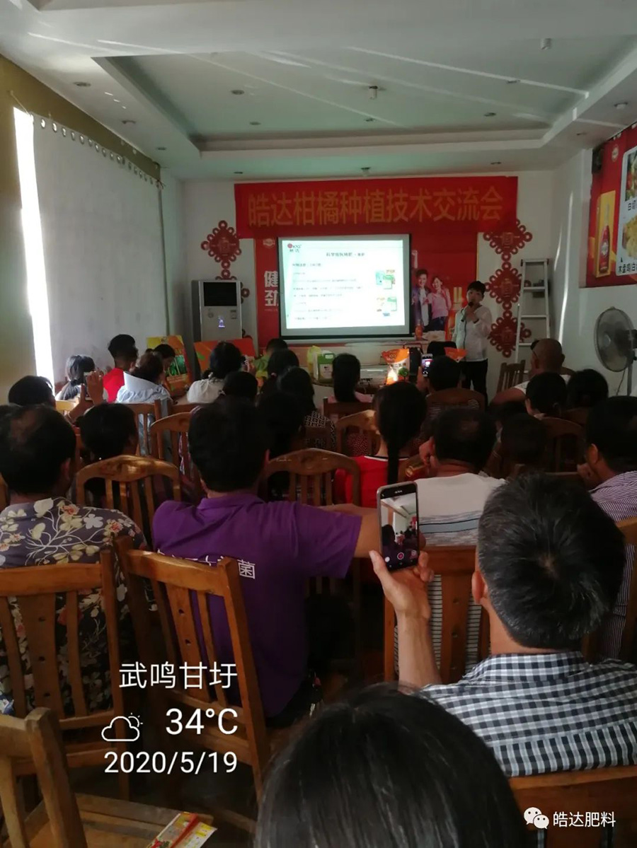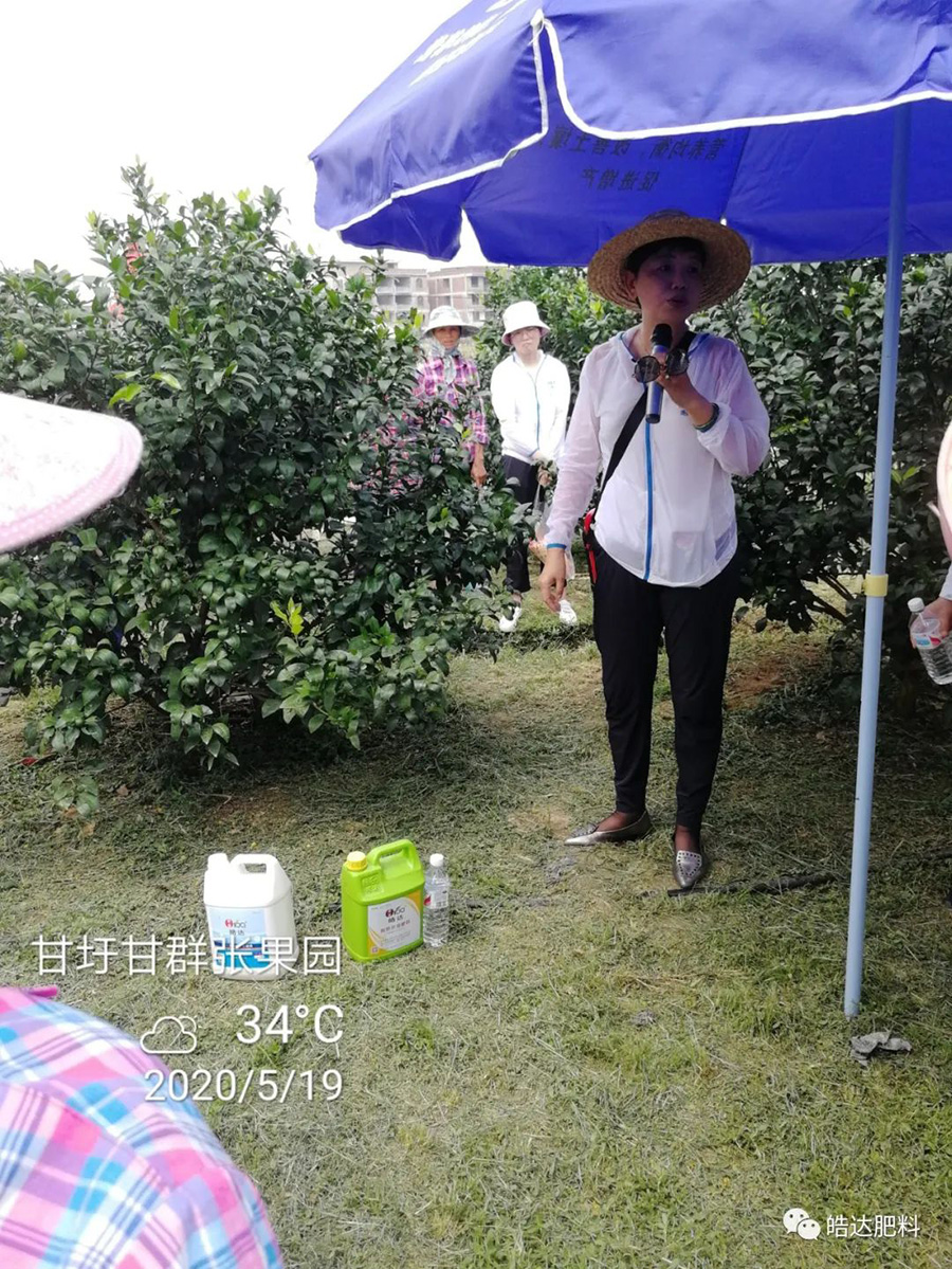在甘老板的果園里,皓達梁老師針對近期所面臨的落果、膨果施肥等問題,進行了詳細的分析和講解,并提供了解決方案,果農們對梁老師的授課十分認可。現場會上,梁老師就近期控梢保果和后期秋梢肥等問題作出了詳細的講解,給果農們介紹了皓達產品的多功能性和高效性,也讓果農朋友們明白皓達硼、皓達鈣與市場上硼、鈣肥的區別,果農朋友們紛紛點頭支持。參會農戶熱情高漲,并且不時手機拍照記錄。
