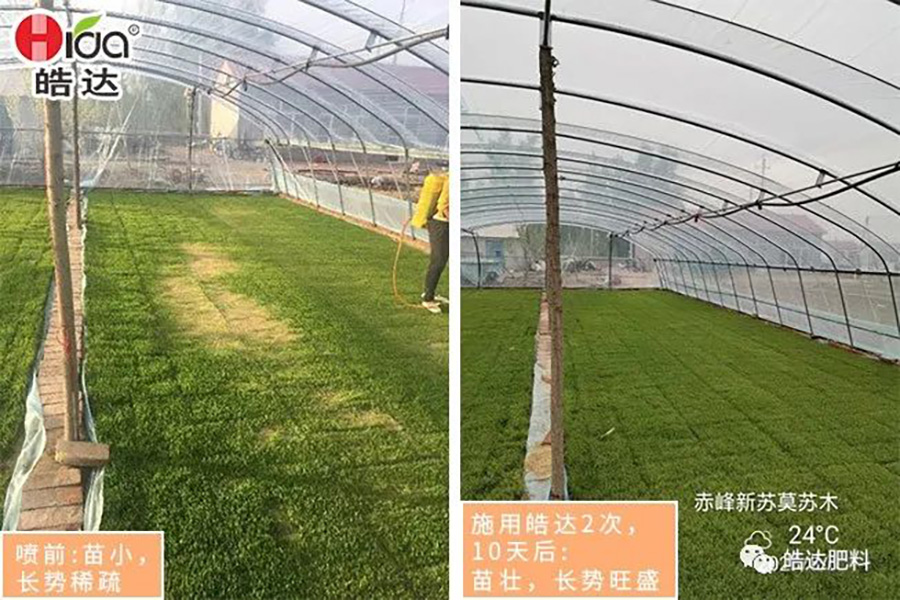 • “斷奶肥”一般在二葉一心前施用,使用皓達(水育秧100克一壺水,旱育秧45克一壺水)進行葉面噴施,促進葉后油亮,根系健壯,須根茂密。