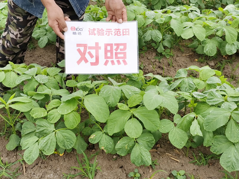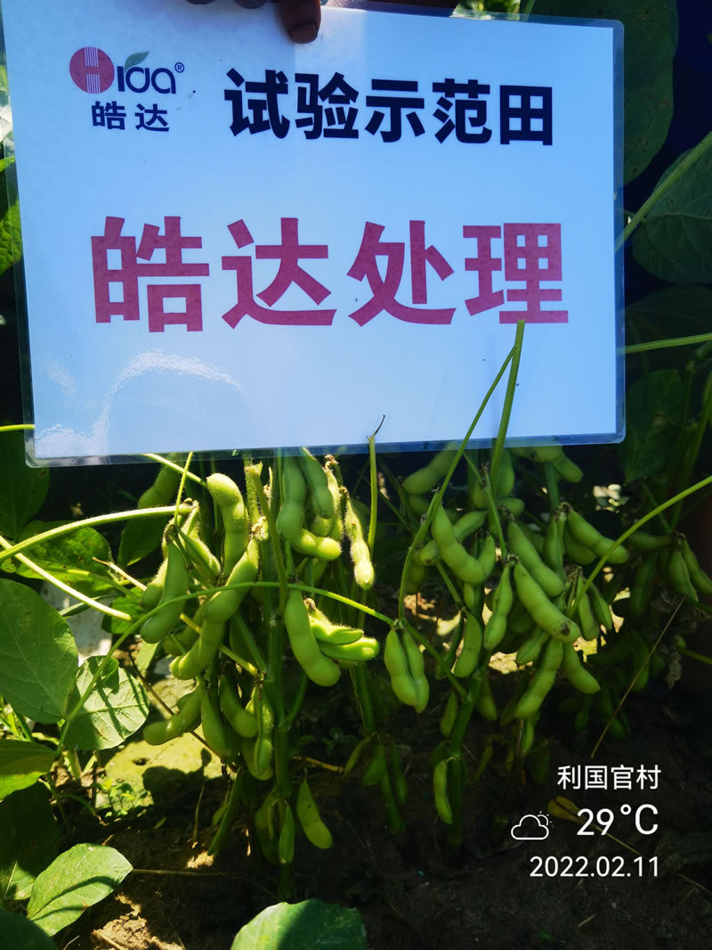 施肥時期:苗期 時期問題:苗弱生根差,徒長、莖桿細長,抗逆性差; 施肥方案:葉噴+滴灌(底肥拌肥)(30斤水用量) 葉噴:(30斤水用量) ①皓達功能肥800倍(20mL)+除草劑(選擇型) ②皓達功能肥250倍(60mL)+皓達硼800倍(20mL)+殺菌藥噴(控旺促生根) 注意:在毛豆第一片葉子時進行莖葉處理以防禾本雜草和闊葉雜草。 拌肥或淋施:用皓達原液0.4%與復合肥、除草劑拌勻后施底肥、追肥或在2葉1心時每畝用量皓達功能肥100-200mL與復合肥配合淋施 施肥效果:促進根系多生快發,出苗整齊蹲實不徒長;幼苗生長健壯對后期促進分枝形成,及花芽分化均有很好作用,有利根瘤菌發育,增強固氮能力。