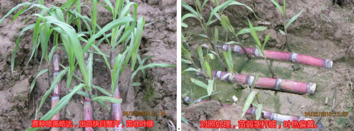 施肥時期:播種前 施肥方案: 浸種: 皓達功能肥每200mL兌水200-300公斤。一般浸種12-24小時。 施肥效果:增強種苗吸水能力、促進發(fā)芽,也可殺滅種苗上的部分病蟲害,能縮短種苗萌發(fā)出土的時間、提高萌芽率。浸種可以預防低溫、防止爛根,使果蔗種出苗整齊、健壯。
