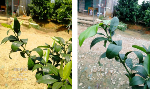 左圖:前期枝梢情況 右圖:噴施皓達控旺10天后