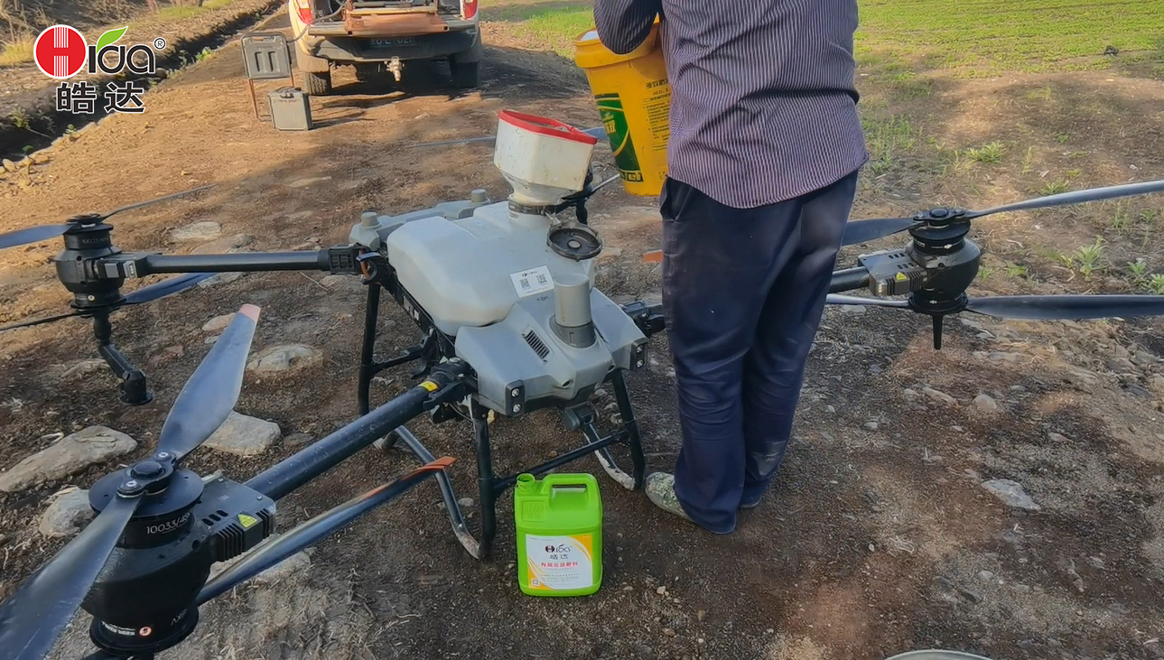 皓達功能肥是一種高效、環保的液體肥料,具有很好的流動性。通過引進皓達微生物次生代謝物,我們制作出一種更適合無人飛機噴灑的高濃度高效方案。這種高濃度少水量的噴施模式,可以減少農藥對環境的污染,同時也可以提高防治效果及肥效。