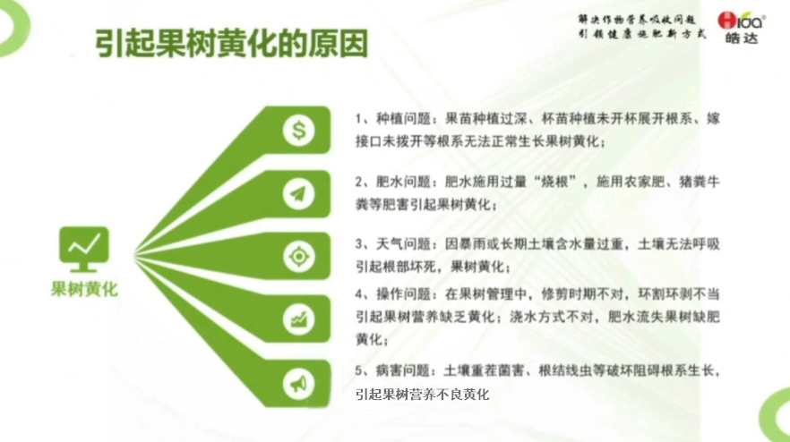 果農朋友們,以下是導致果樹黃化的五個核心問題及其解決建議:
