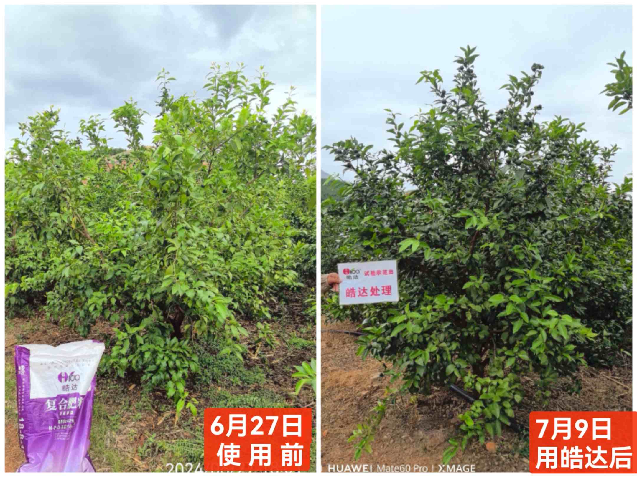 根據果樹長勢、掛果量,開溝埋施或撒施皓達果樹專用肥,配合皓達加中微量元素淋根或葉噴。