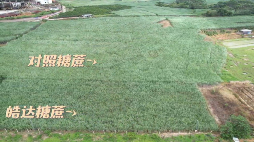 航拍鏡頭下的皓達甘蔗長勢較對照更旺盛,產(chǎn)量有保障。