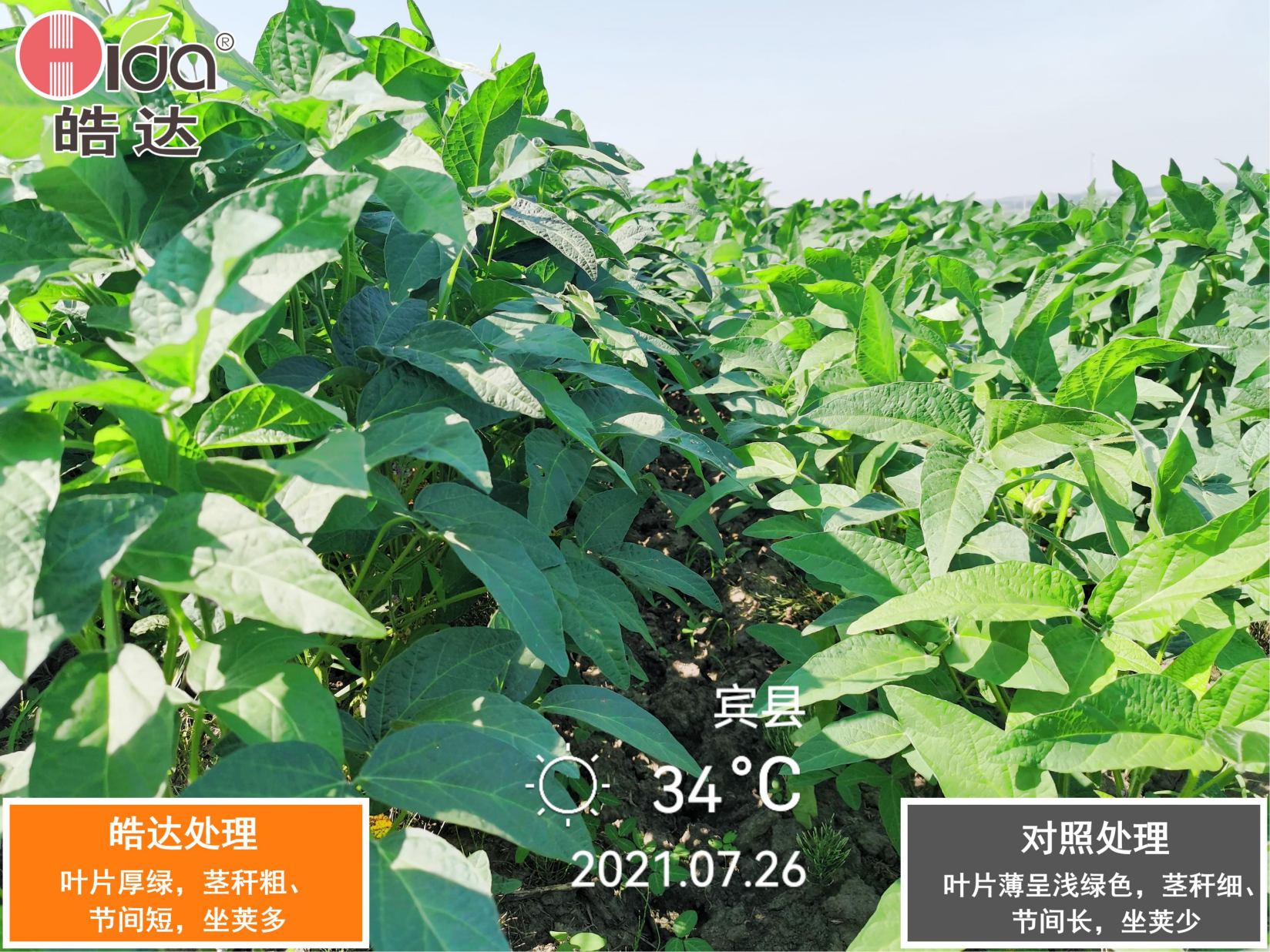 皓達養分增效技術使大豆植株生長健壯,葉片厚綠,光合作用增強。進而提高結莢率和有效豆莢數,為大豆產能和產量的提升奠定了堅實基礎。