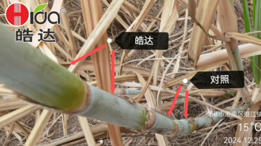 梁老板介紹到他的甘蔗長得比別家好,主要是因為今年10月中旬和11月初飛防噴了2次皓達,噴過皓達后的甘蔗耐旱、抗霜凍能力明顯增強。
