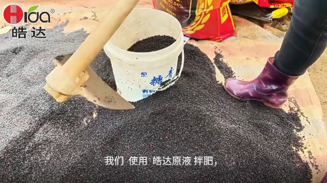 將皓達(dá)功能肥按底肥用量的0.4%原液與底肥一起進(jìn)行攪拌摻混均勻(如:40Kg復(fù)合肥加入160 mL皓達(dá)原液) ,形成一種新型肥料,陰干后均勻撒施在甘蔗種植溝。經(jīng)過皓達(dá)拌肥的底肥可減弱養(yǎng)分離子間拮抗作用,對(duì)養(yǎng)分有增效作用,能促進(jìn)甘蔗對(duì)肥料的吸收,提高肥料利用率。