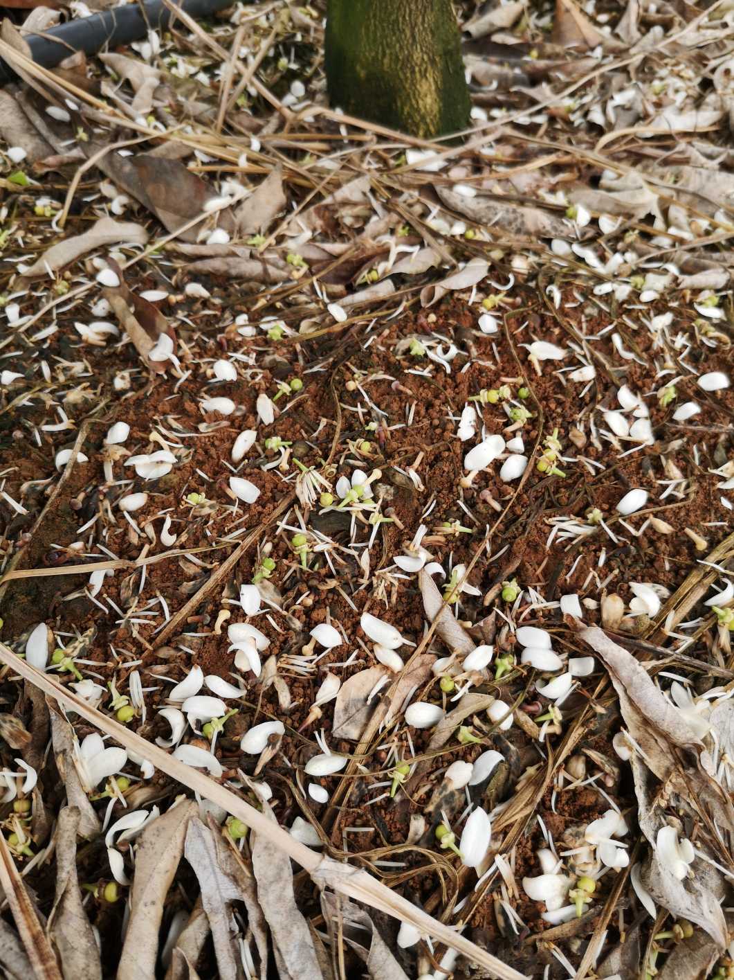如果營(yíng)養(yǎng)生長(zhǎng)(葉)與生殖生長(zhǎng)(花)不協(xié)調(diào),這棵樹這么多花,一夜之間樹底下一片“白”,果樹產(chǎn)量難以保證。