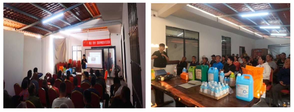隨后,來(lái)自武漢皓達(dá)農(nóng)業(yè)科技有限公司的梁老師成為全場(chǎng)焦點(diǎn)。梁老師憑借豐富的專業(yè)知識(shí)和實(shí)踐經(jīng)驗(yàn),深入講解了荔枝不同生長(zhǎng)階段的種植管理要點(diǎn),并詳細(xì)介紹了皓達(dá)系列產(chǎn)品在荔枝種植中的應(yīng)用。梁老師通過(guò)生動(dòng)的視頻和圖文展示,向種植戶們直觀呈現(xiàn)了皓達(dá)系列產(chǎn)品在荔枝保花保果、增強(qiáng)植株抗逆性方面的顯著效果,引發(fā)了現(xiàn)場(chǎng)農(nóng)戶的熱烈討論和濃厚興趣。