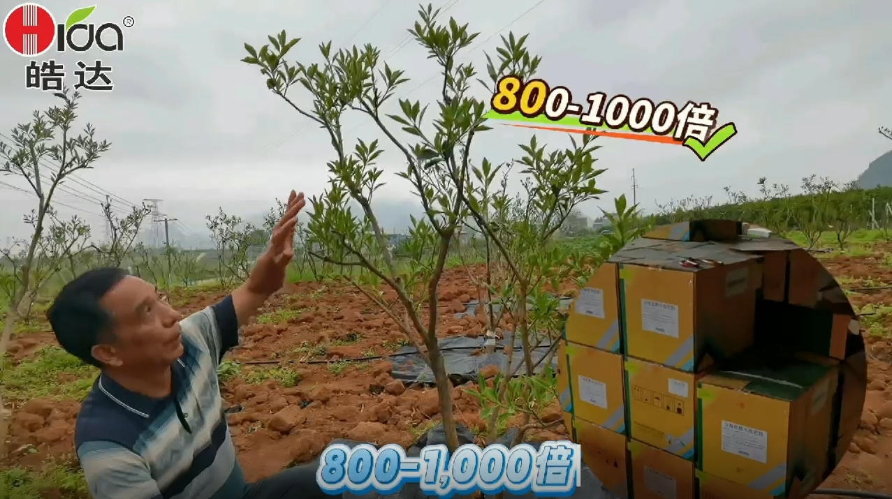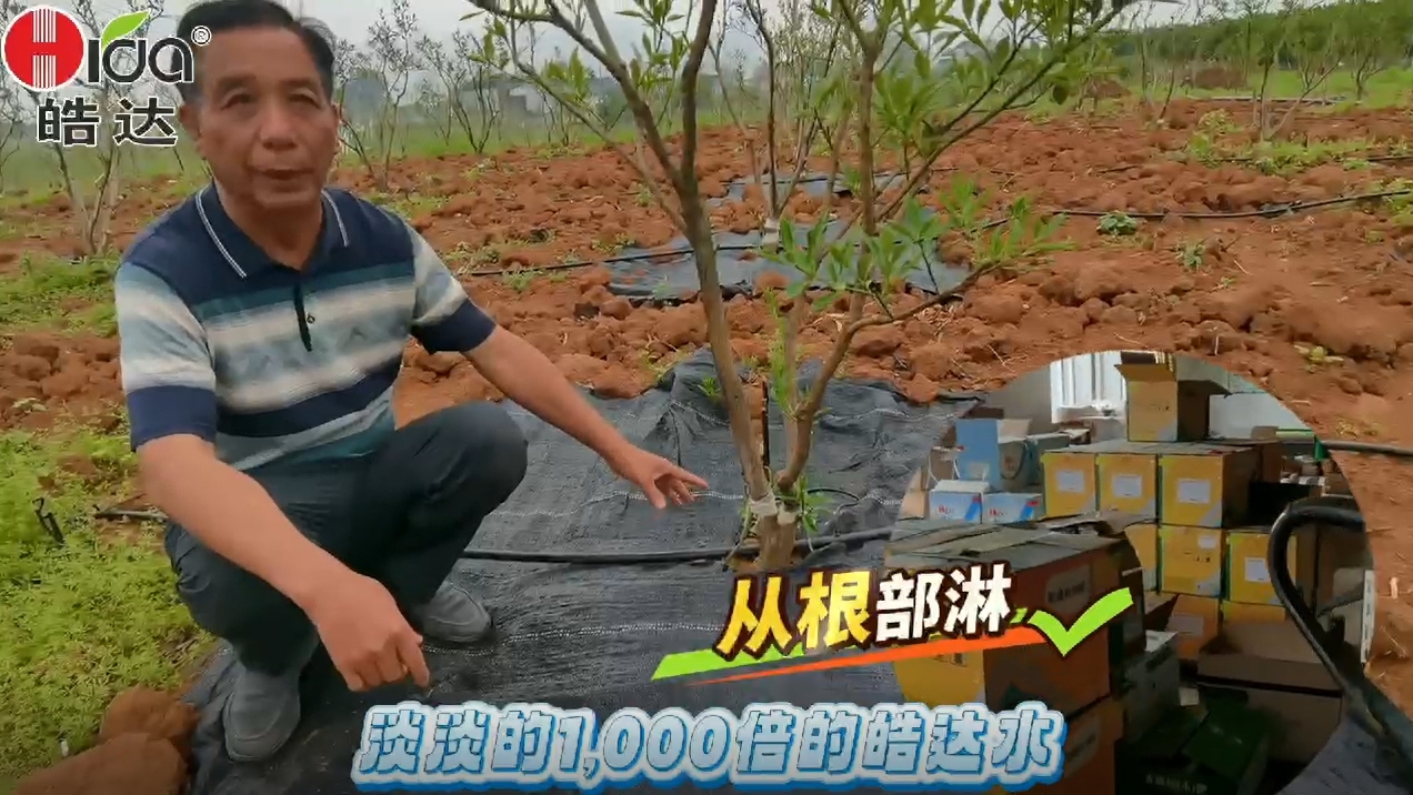 黃總用皓達(dá)產(chǎn)品已經(jīng)20多年了,這次黃總移栽了一批新脆蜜金柑大樹,移栽20天后開始用皓達(dá)1000倍液灌根3次,皓達(dá)能刺激果樹根系的發(fā)育,能快速萌發(fā)新根生長(zhǎng)。