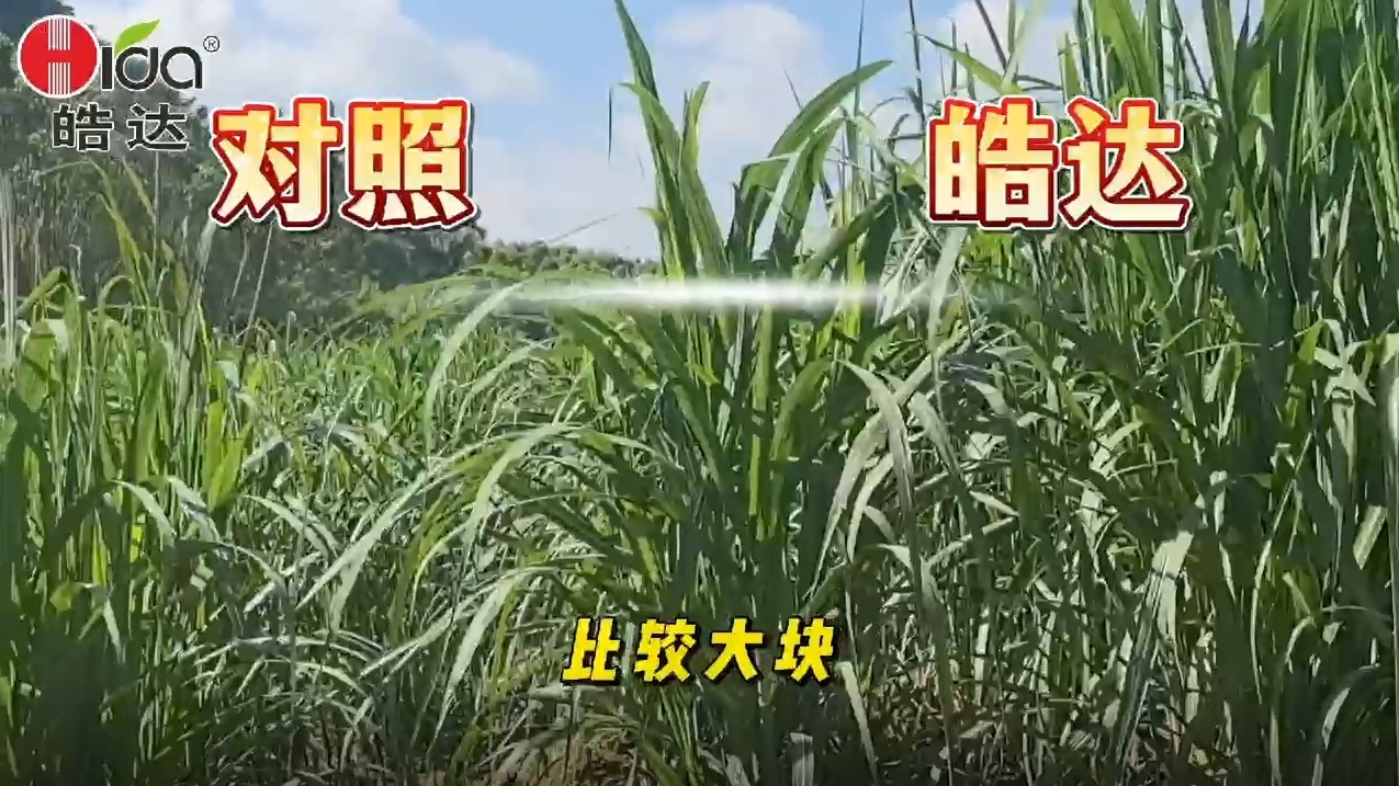 廣西貴港覃塘區(qū)李老板有甘蔗種植面積有600畝地,2024年5月中旬新植的甘蔗 被水泡過兩次,長勢很弱也不均勻,在7月份認識皓達,并且使用皓達,通過飛防皓達100毫升/畝地,同時自己留有對照下來,一個月后觀察效果明顯。