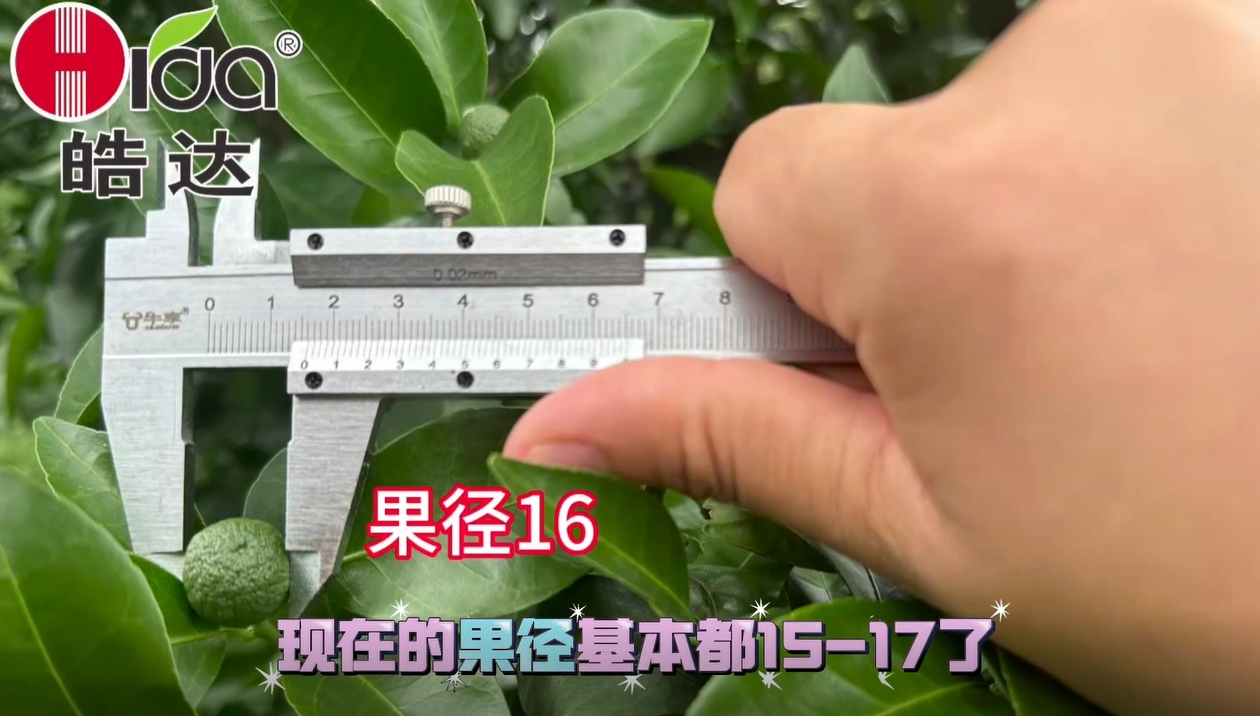 5月的惡劣天氣過后,您的果保住了嗎?九叔的砂糖橘果園一直在使用我們皓達(dá)方案,現(xiàn)在的果徑基本都15-17mm。