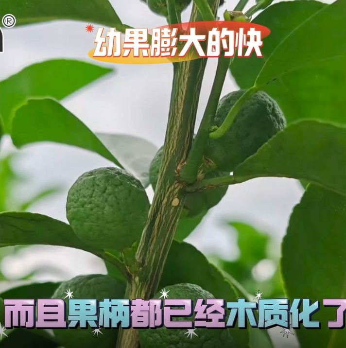 幼果膨大快,果柄都已經(jīng)木質(zhì)化了,葉片厚綠油亮,讓果保得更穩(wěn)。