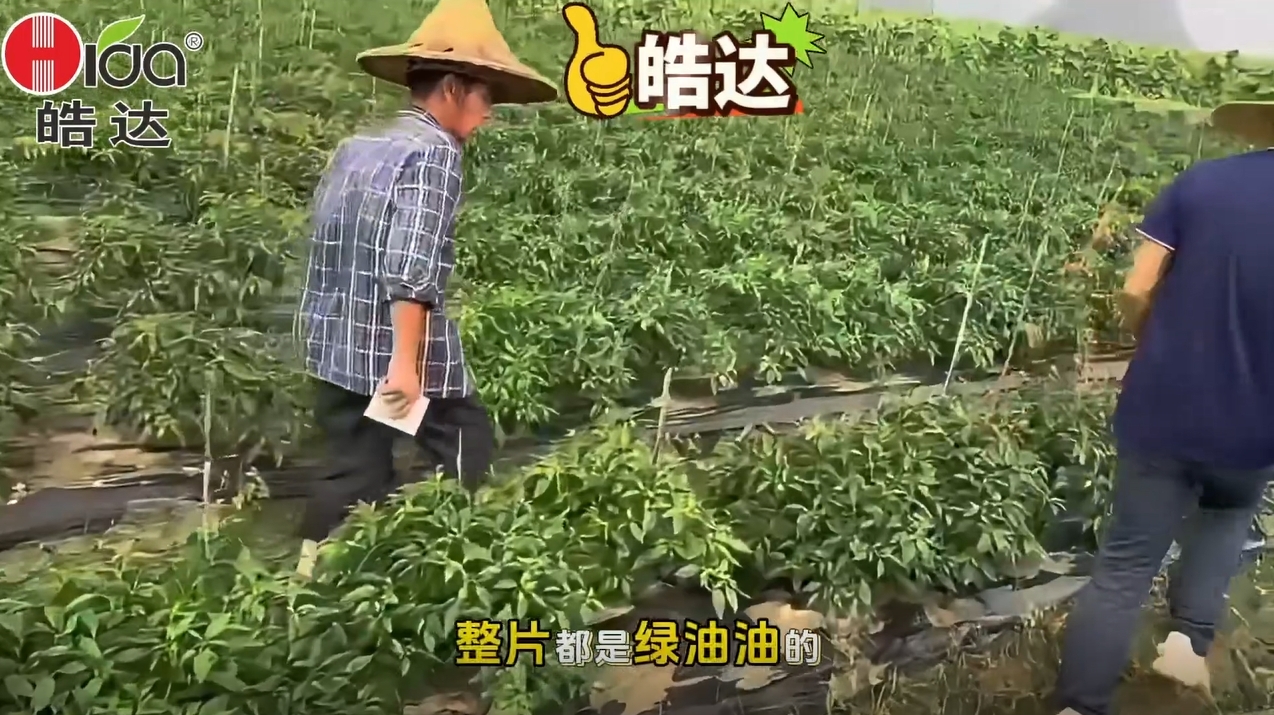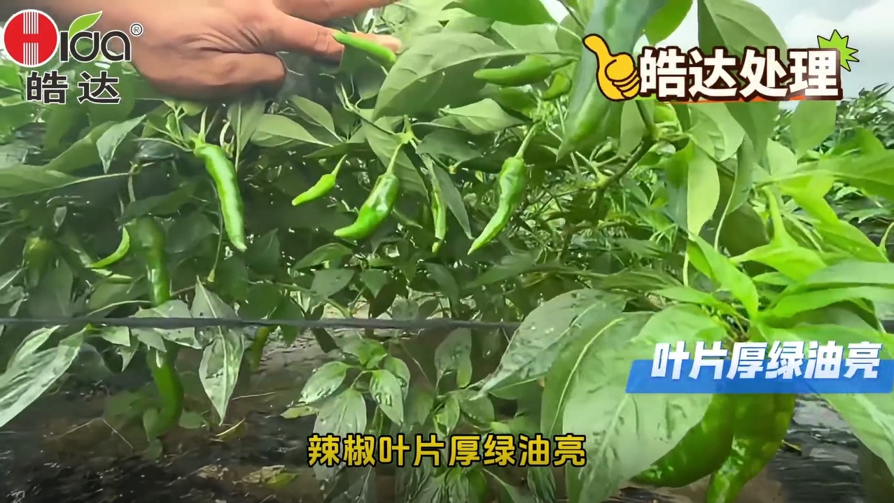 1.皓達處理的辣椒葉片厚綠油亮,辣椒又大又多。