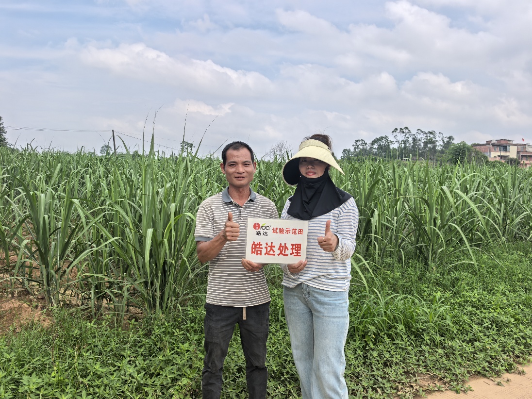 廣西貴港李老板共有320畝糖蔗基地,四月上旬李老板使用皓達300倍葉面噴施(以下稱皓達處理)蔗苗,今天我們回訪了同一期種植經過皓達處理過的18畝糖蔗與未使用皓達處理的糖蔗(以下稱對照),下面一起來看看有何差異。