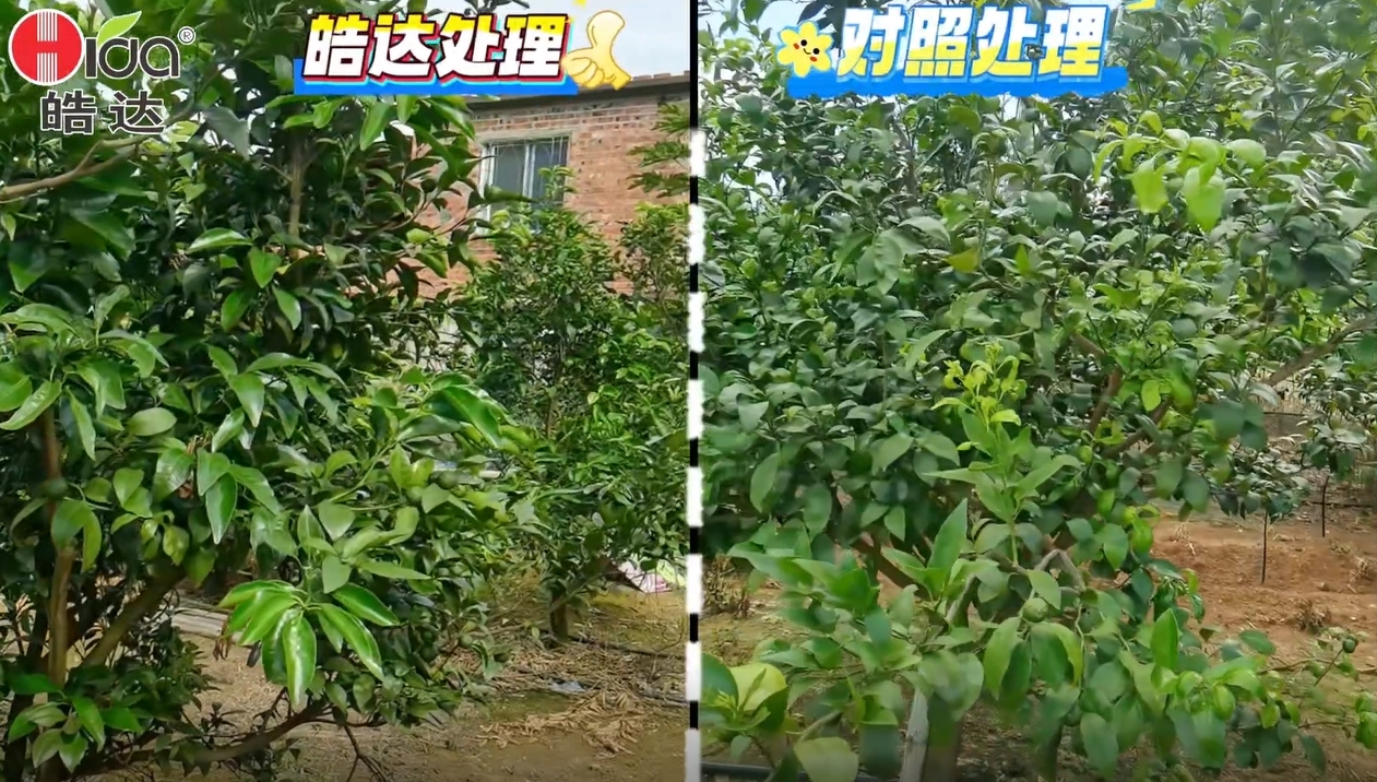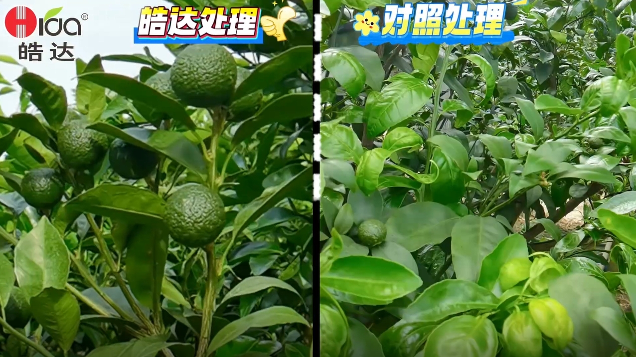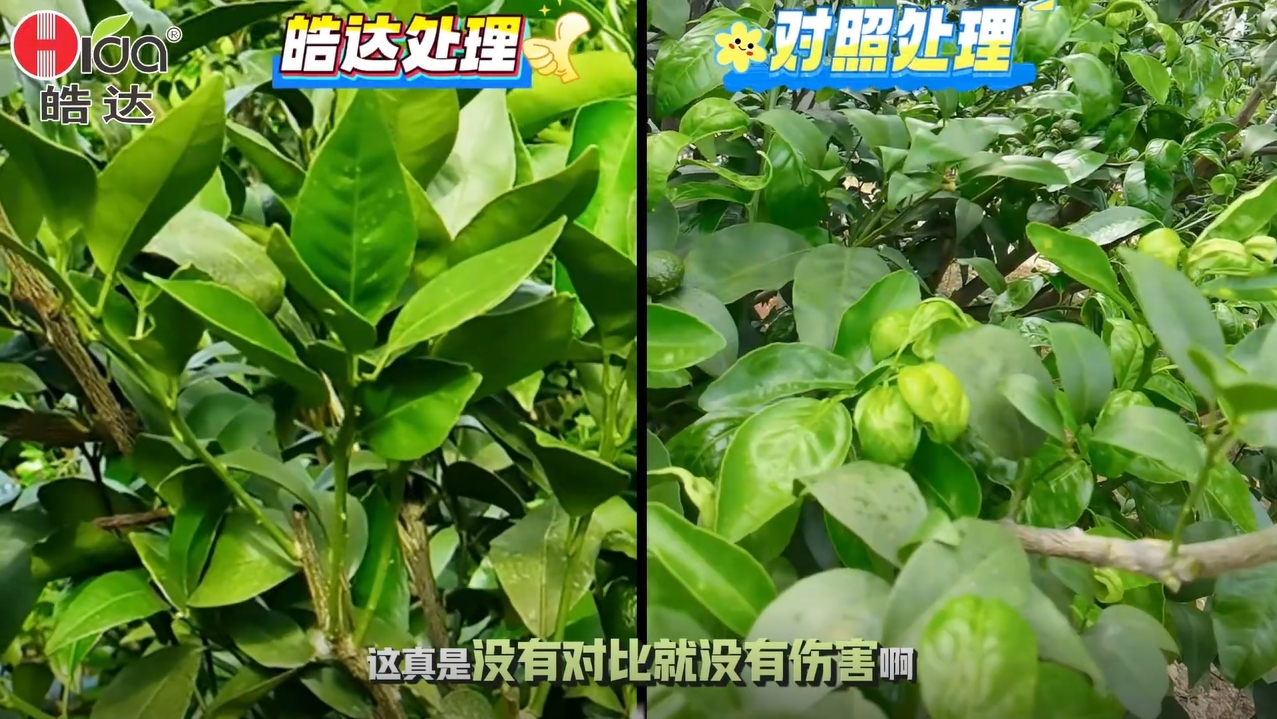 同品種的沃柑樹(shù),由于選擇皓達(dá)產(chǎn)品(以下簡(jiǎn)稱(chēng)皓達(dá)處理)和其它產(chǎn)品(以下簡(jiǎn)稱(chēng)對(duì)照處理)的管理方法,效果完全不同: