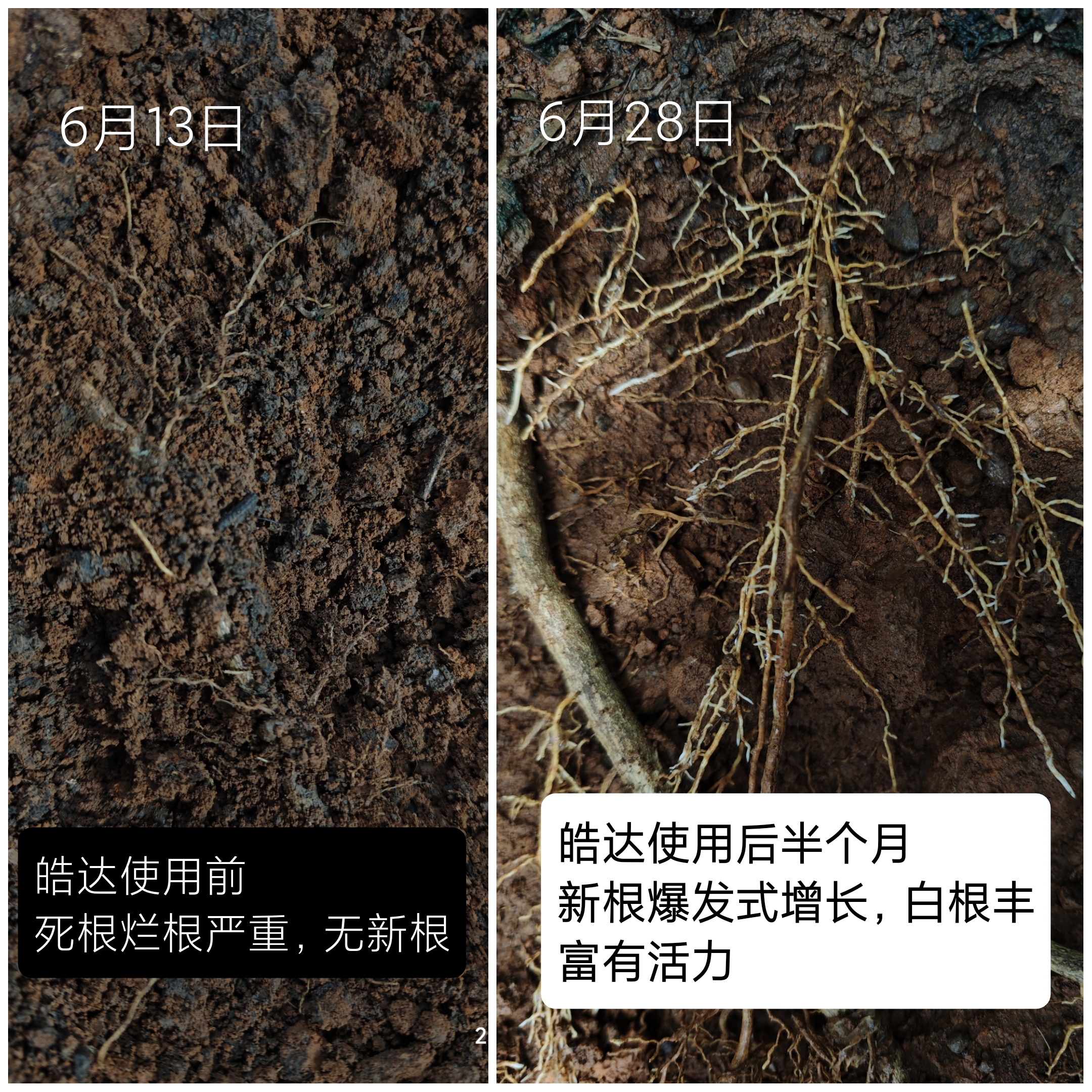 皓速補100+皓達(dá)菌種“一箭雙雕”,根治土壤板結(jié)低有機質(zhì)問題,改善根系吸收,淋根直達(dá)快速見效。