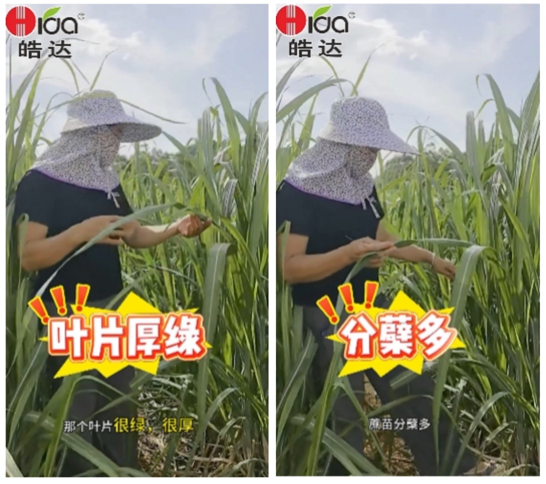 所以韋老板今年的甘蔗葉面肥全部使用皓達。現在的甘蔗葉片寬大厚綠,分蘗早而多,莖稈均勻,韋老板非常滿意。