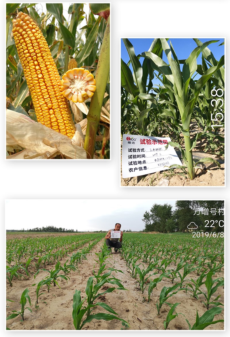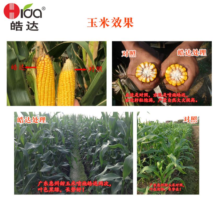 施肥時期:灌漿期 時期問題 干物質不易積累,籽粒不飽滿,易禿尖,千粒重低; 施肥方案: 滴灌:滴灌:皓達功能肥100mL/畝(隨大肥) 施肥效果: 增加干物質的積累和千粒重,玉米籽粒飽滿,同時能有效減少玉米禿尖的產生,玉米顏色正,產量高。