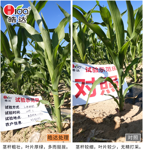 施肥時期:苗期 時期問題: 根細苗弱,幼苗抗逆性差,除草劑藥害; 施肥方案:(4-6葉) 葉噴: 皓達功能肥1000倍(30-50mL/畝)+皓達鋅1000倍(50mL/畝)+除草劑 施肥效果: 促根壯苗,提高玉米幼苗的抗逆性,配合除草劑施用,可以促進除草,并減輕和避免玉米苗受到除草劑藥害。