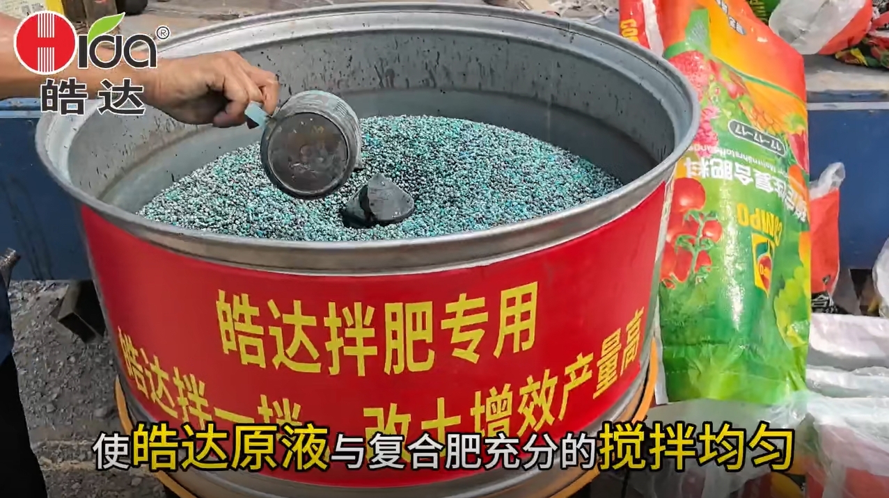 將皓達肥原液與復合肥按一定比例混勻,制成含有“皓達”的新型肥料。