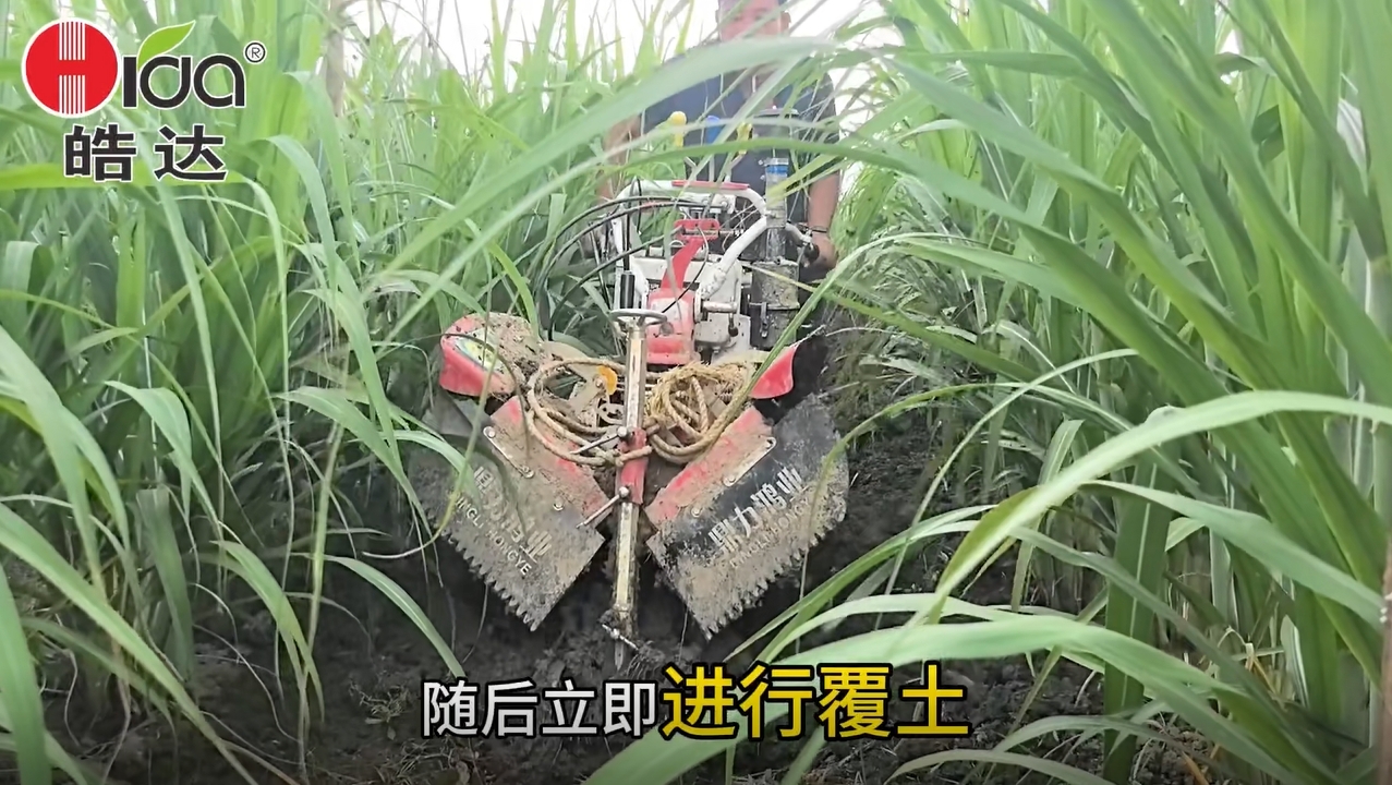 將拌好的復合肥撒施在甘蔗的根部,