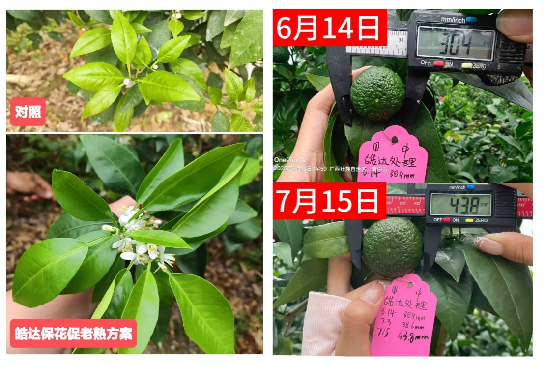 1.皓達(dá)肥不含激素、純營(yíng)養(yǎng),有近30年的種植技術(shù)指導(dǎo)方案(穩(wěn)蕾壯花、老熟保果、控梢保果、膨果防裂、養(yǎng)根膨果、增甜著色、清園養(yǎng)樹等方案)。